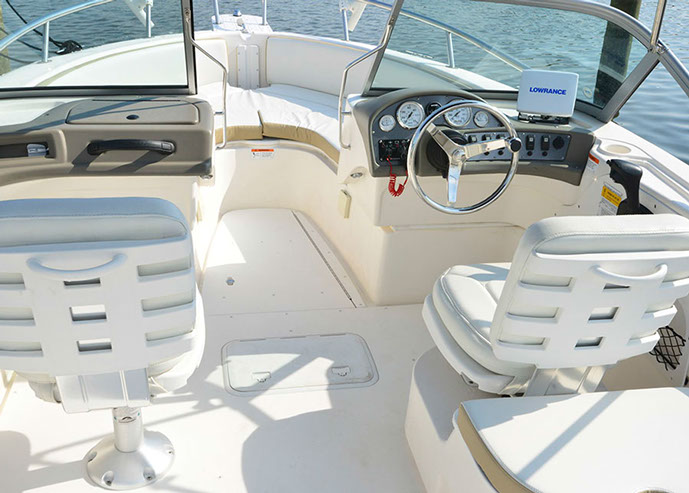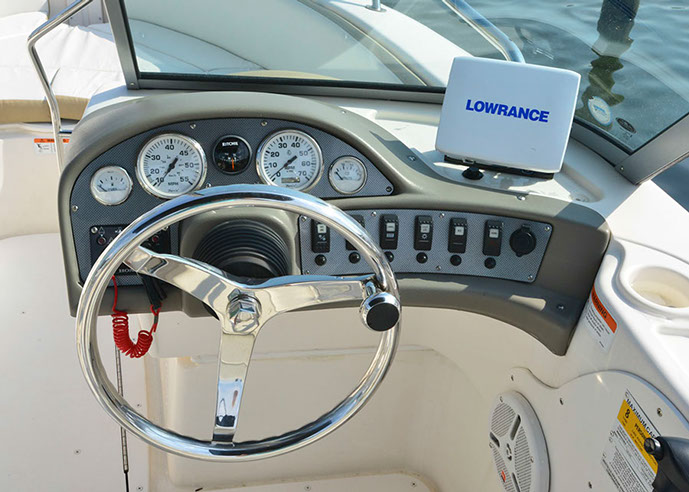 The 135 Honda outboard motor is quiet, yet has the power for tow sports if desired. The ride is very stable and comfortable. This 19 foot rental boat will take you where you want to go and put a smile on your face.