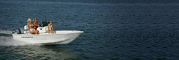The Triumph 15 foot center console rental boat is perfect for a couple or small family who want to explore Topsail Island. With nice cushions and a V-hull, the 15 has a smooth ride and is very agile and easy to dock.