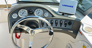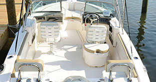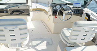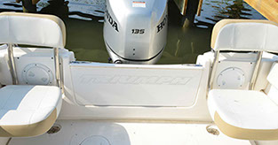 The 135 Honda outboard motor is quiet, yet has the power for tow sports if desired. The ride is very stable and comfortable. This 19 foot rental boat will take you where you want to go and put a smile on your face.