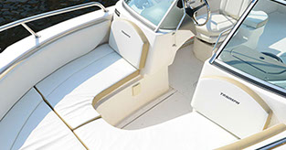 Triumph made a gem of a family cruise boat with the 19 foot dual console. This boat is great for families with children because there is plenty of cozy, comfortable seating. You'll enjoy how kid friendly it is. While docked or anchored parents can park in the console seats and kids can circulate back and forth in the center of the boat. This boat is so popular we have 2 of them!